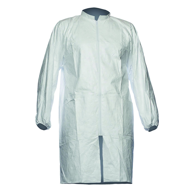 The DuPont Tyvek 500 lab coat is specially designed for use with Tyvek apparel, offering enhanced protection for body parts that are more exposed to hazardous substances. Applications include: Pharmaceutical handling, chemical protection, lead and asbestos abatement/remediation, general maintenance/operations, spray painting and general clean-up, amongst many others. Conforming to PPE Category I and Antistatic treatment (EN 1149-5), the Tyvek 500 lab coat features stitched internal seams, tunnelled elasticated cuffs, two pockets and zipped closure.