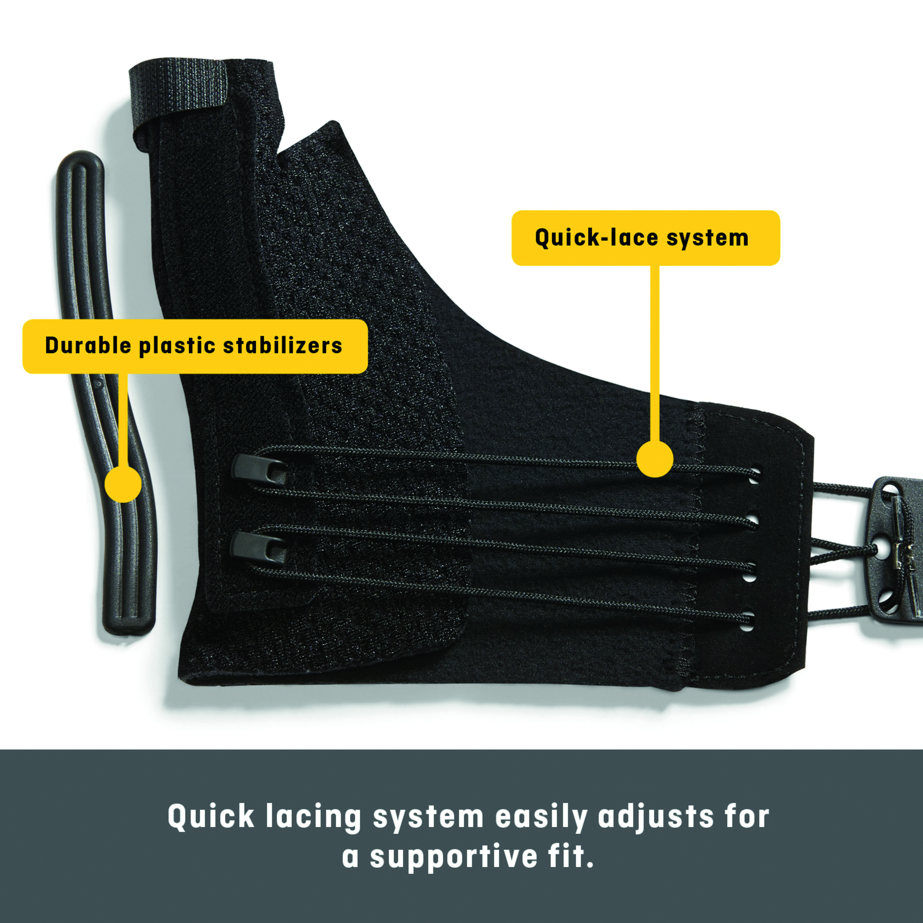 - Easy lacing system for one-step application and adjustability