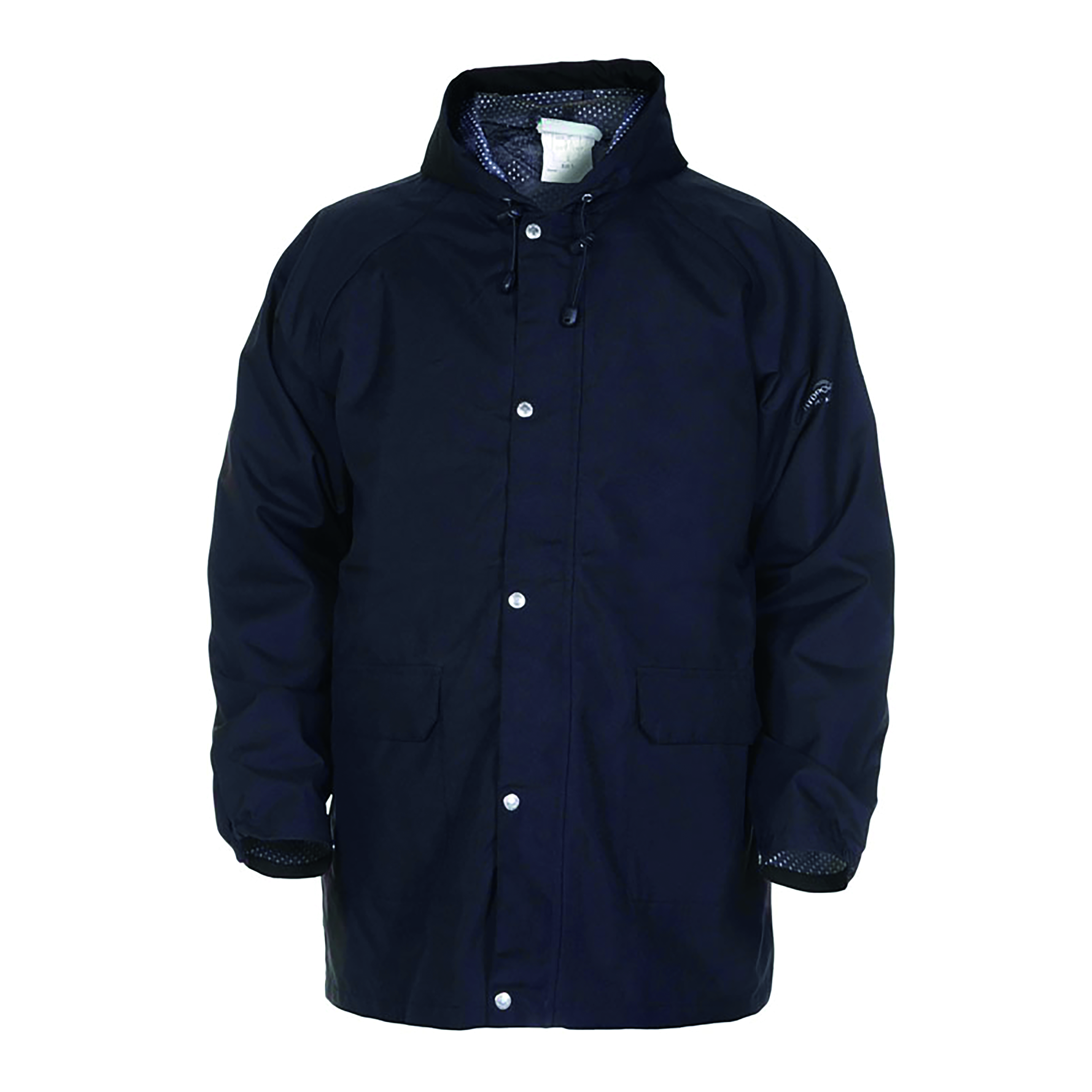 * Zip front with storm flap cover and press stud closure* Fixed hood* Elasticated cuffs with press stud closure* 2 front pockets with flap* Mesh polyester lining * Simply no Sweat (SNS) 210gsm Polyester laminate fabric * Highly breathable providing great comfort * Durable and cost effective * Smooth polyester textile finish* Conforms to EN343 Class 3 Water penetration* Conforms to EN343 Class 3 Breathability