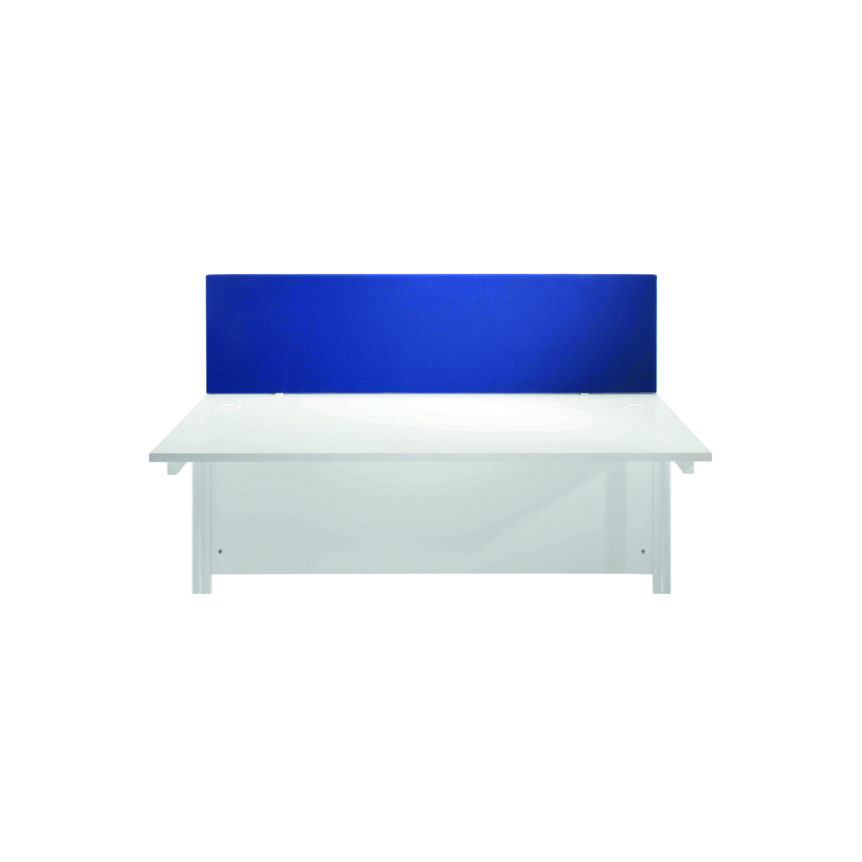 Provide privacy and reduce noise levels between desks with this Jemini Mounted Desk Screen. In a simple blue, the screen is upholstered with Elfin flame retardant fabric with a protective up VA edge trim. This screen measures W1600 x D28 x H400mm and comes with a pair of standard desk clamps.