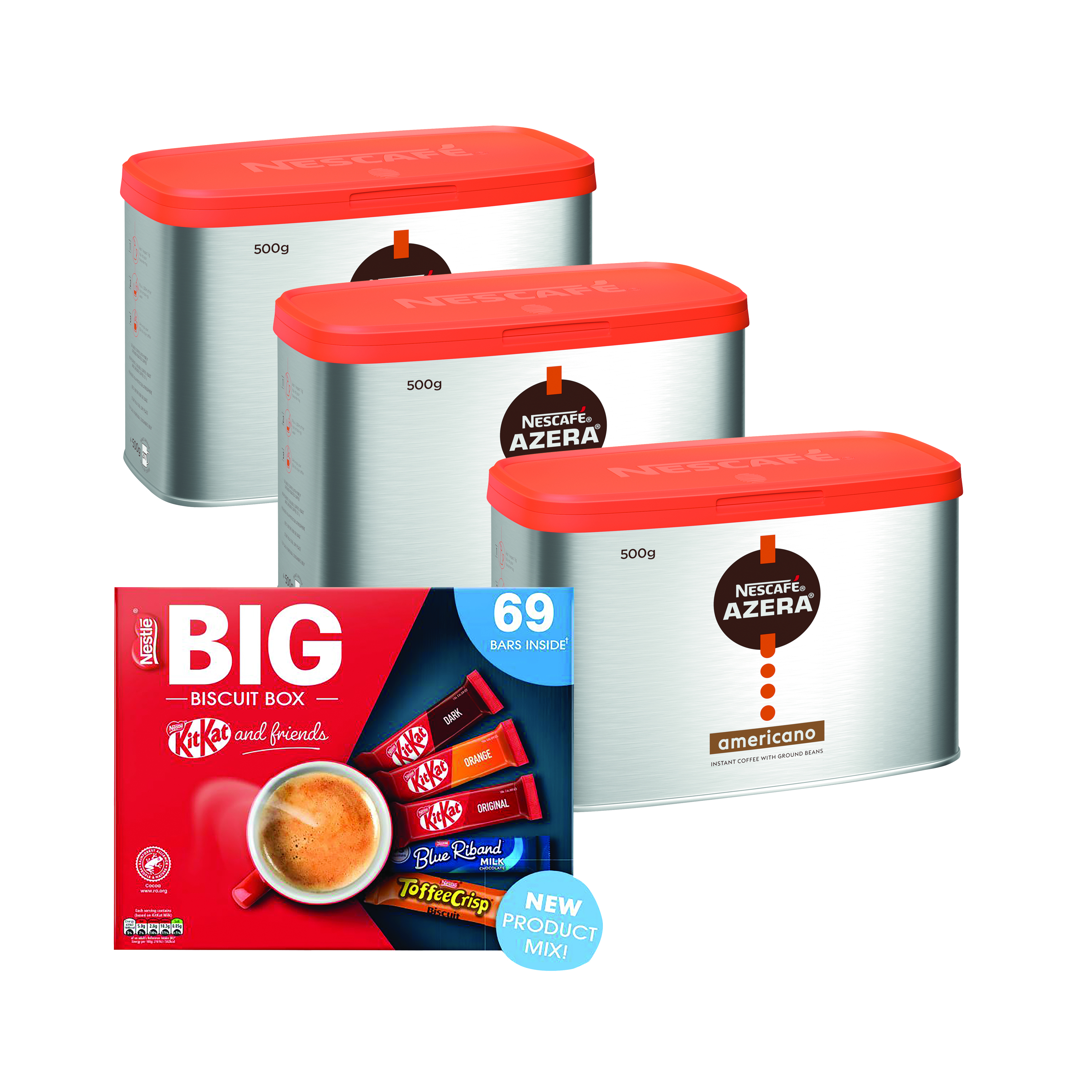 Nescafe Azera 750g x3 + FOC Big Biscuit Box **PROMO £85.78**