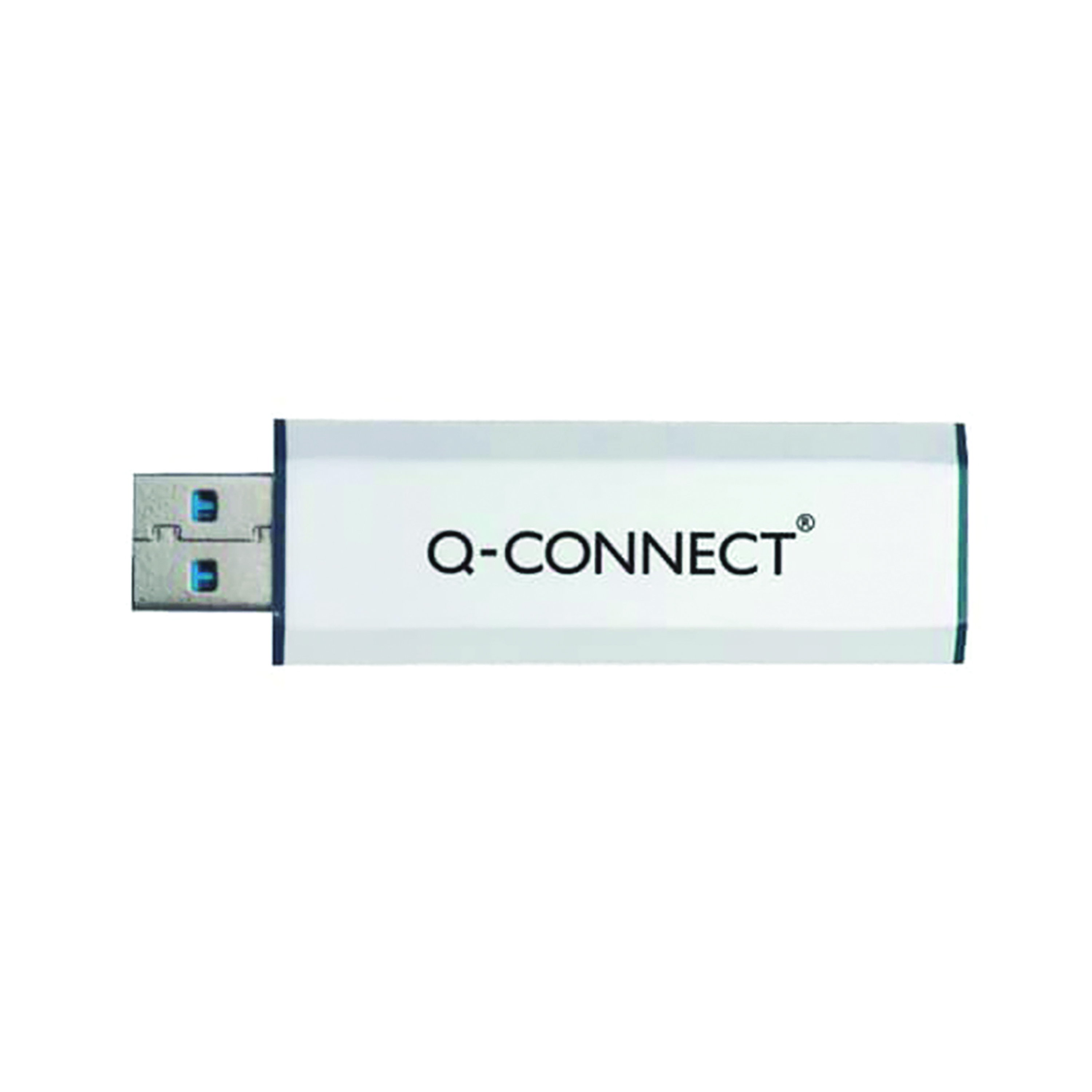 The Q-Connect USB 3.0 Slider Flash Drive features a SuperSpeed USB 3.0 connection for faster file transfers compared to USB 2.0, saving time when backing up or transferring files. The smart silver body slides to reveal the USB connector and protects it when not in use, with no cap to lose. It's suitable for Windows and Mac computers, with back compatibility when using older USB 2.0 ports.